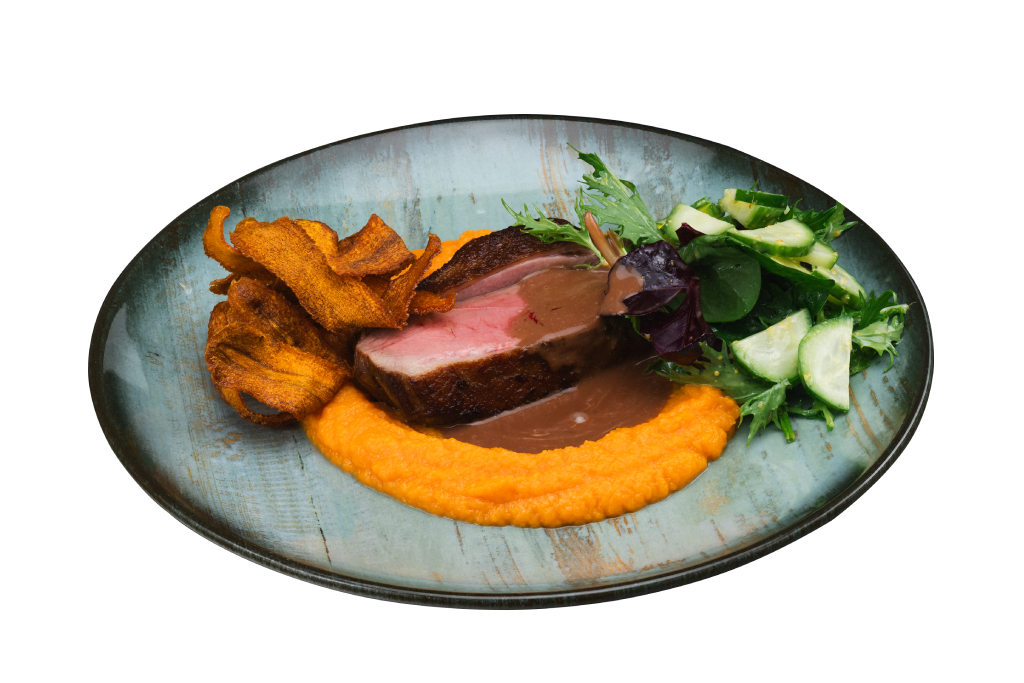 Утиная грудка с морковным пюре и маринованными яблоками 160/170/20 g 450 lei