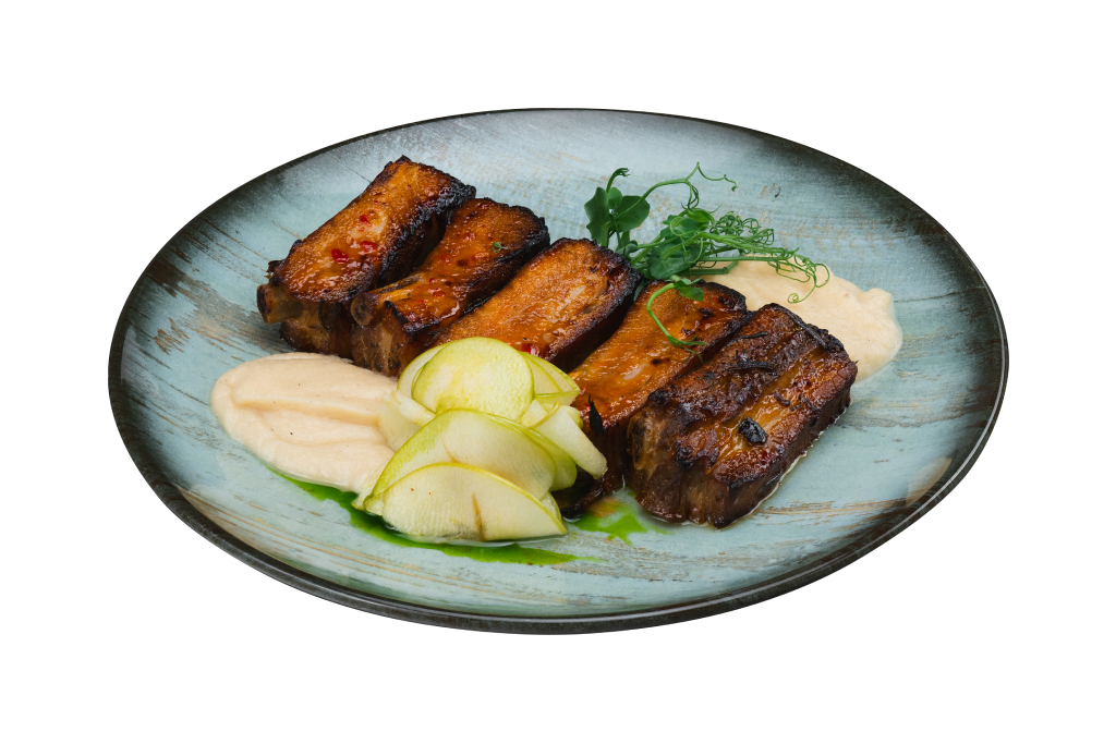 Свиные рёбра с кремом из сельдерея и маринованными яблоками 330/100/30 g 375 lei
